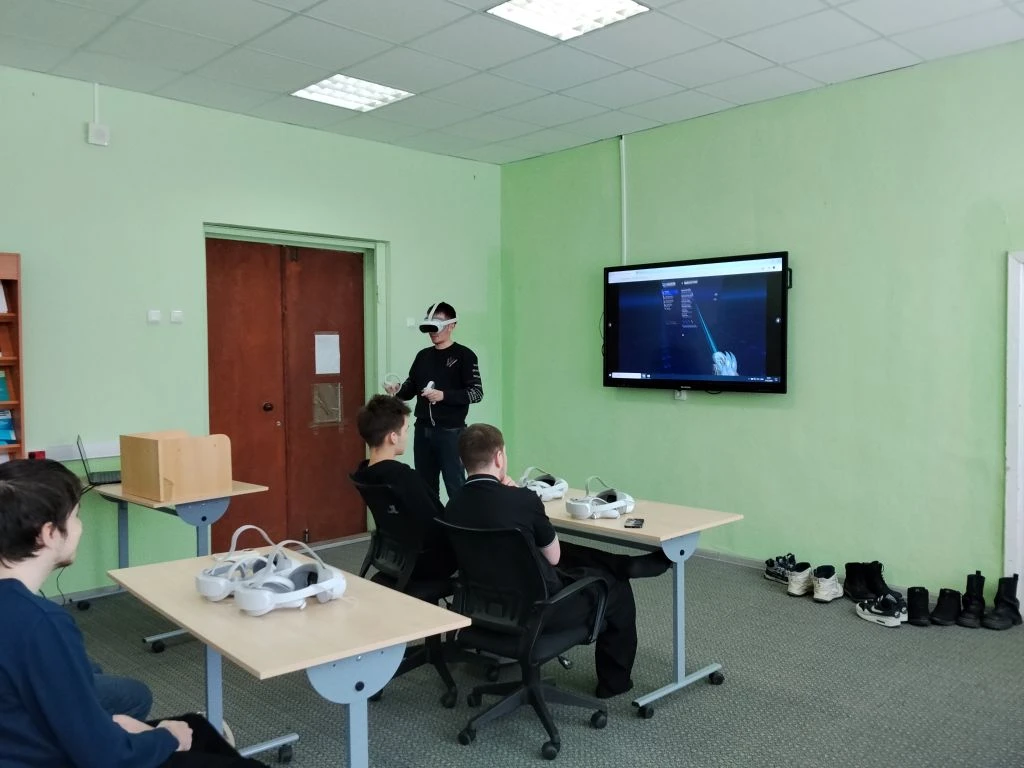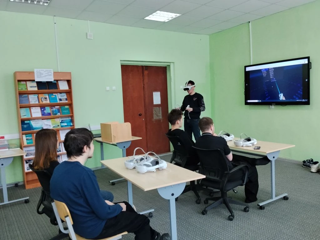 Студенты познакомились с работой операторов беспилотных летательных аппаратов, опробовав VR-симулятор управления дроном. В виртуальной реальности ребята выполняли взлет, навигацию и посадку — все то, что требует высокой концентрации и технической подготовки.